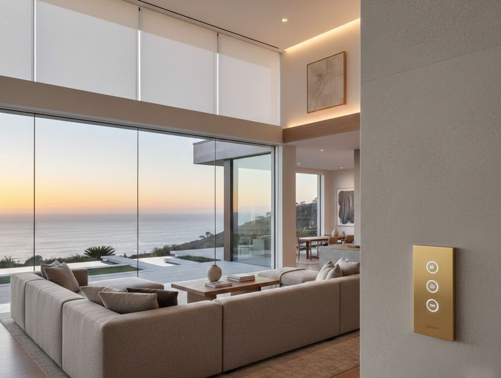 That is why Lutron Palladiom has become a preferred solution in high-end Orange County residences. Its flush-mounted precision, refined metal finishes, and integrated shading capabilities complement modern coastal architecture while supporting advanced luxury smart home automation.