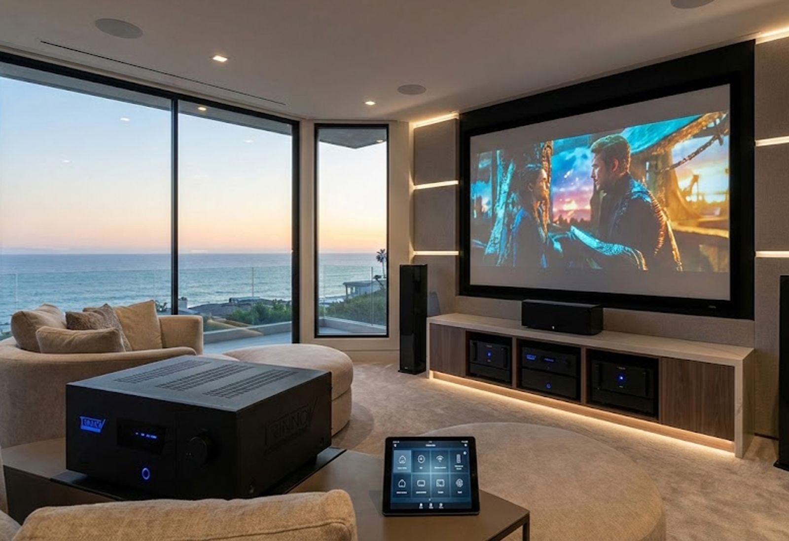- “Movie Night” – Lights dim, shades close, Trinnov activates immersive surround sound