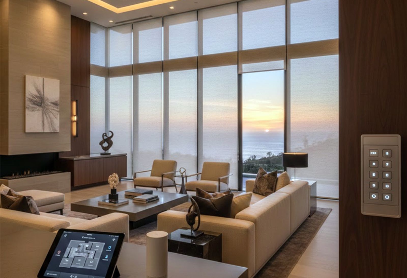 In coastal homes, this offers an ideal way to adjust lighting as the sun sets over the Pacific without needing to manage each zone individually.
