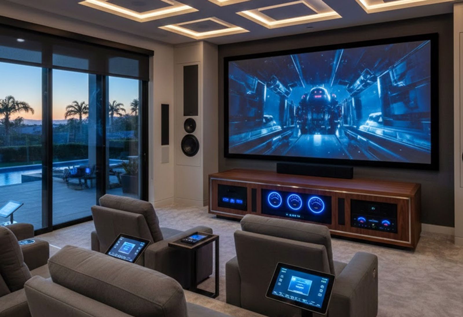 - Design-friendly speaker and screen placement aligned with sightlines and symmetry