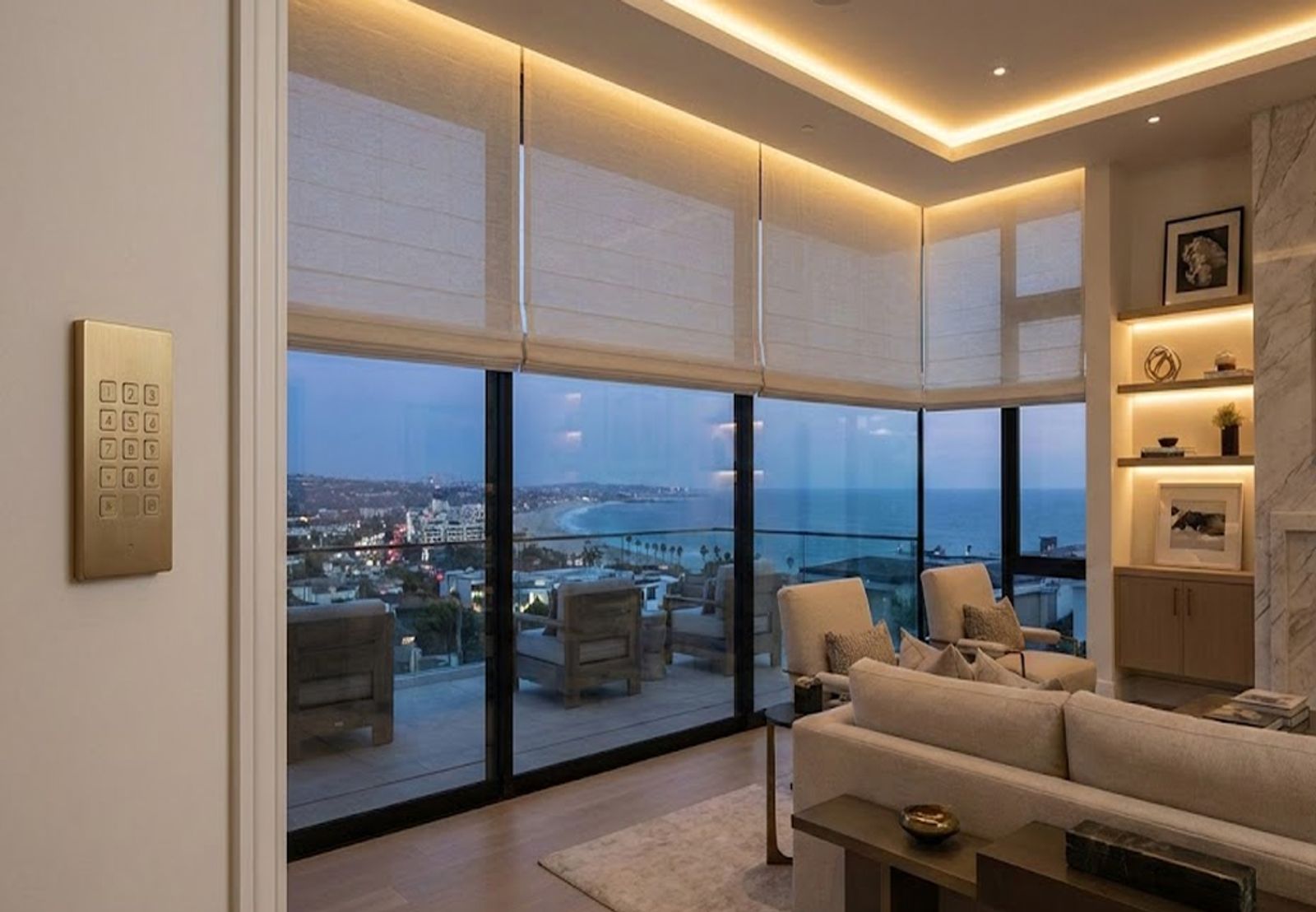 Lutron shades give you the best of natural light without the drawbacks. Automated window treatments reduce glare, protect interiors from UV, and provide privacy without blocking views. In homes throughout Laguna Beach and Corona del Mar, we design shade systems that blend into your architecture while enhancing comfort.