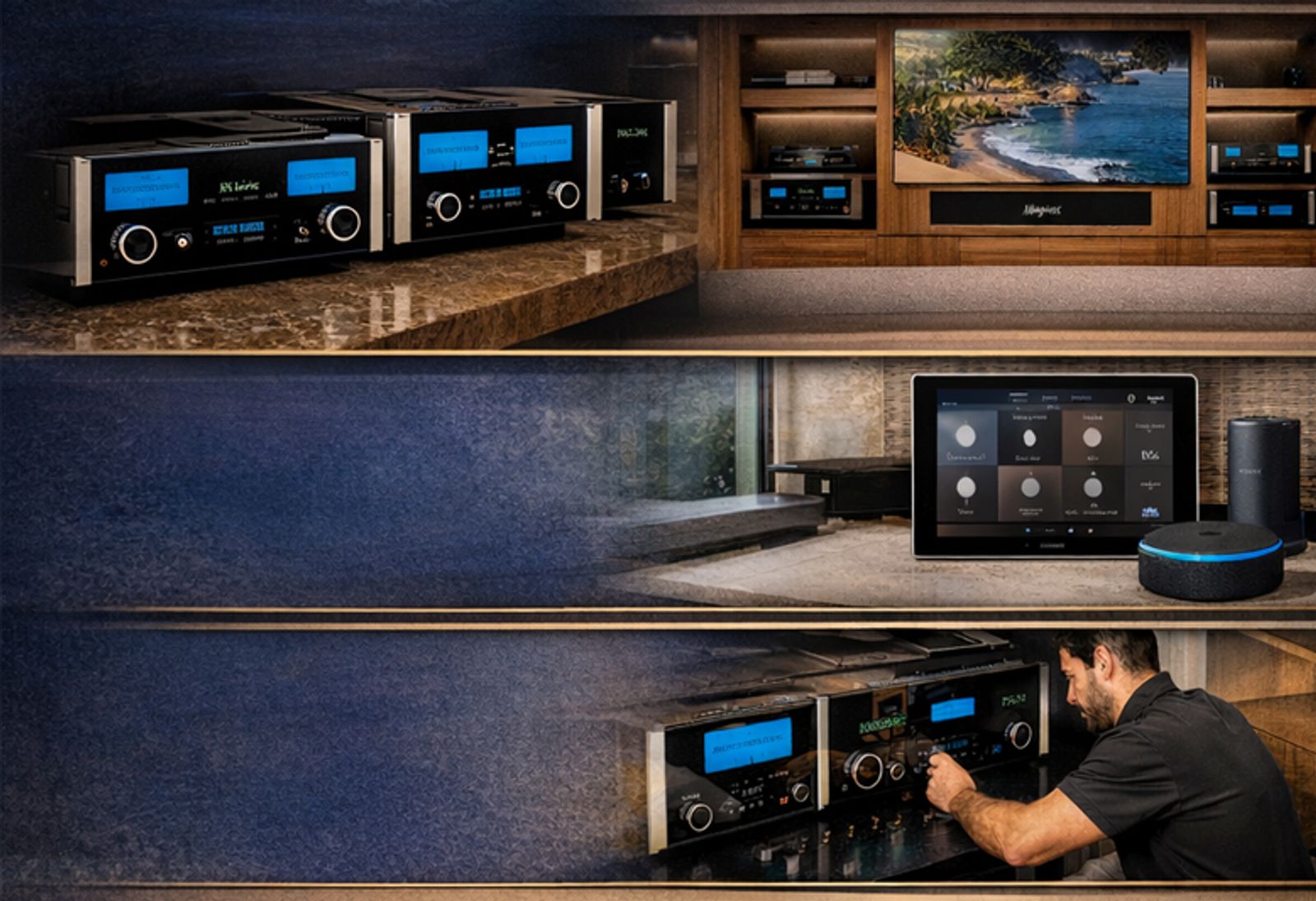 Imagine tapping “Relax” on your touch panel — your McIntosh system begins streaming your favorite playlist, shades lower, and lights dim — all in sync with your lifestyle.